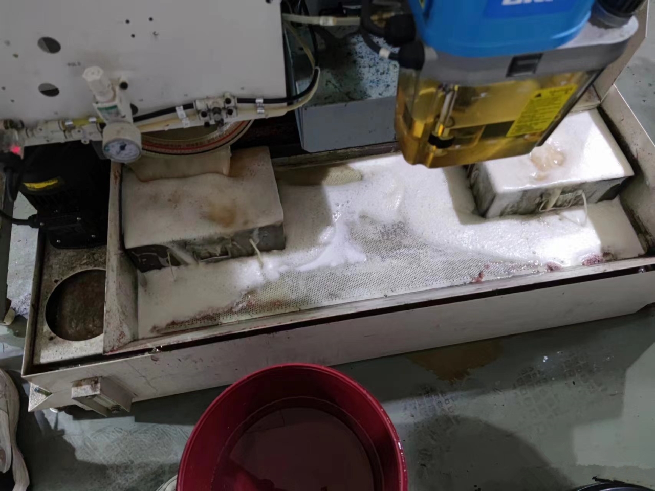 停機前24小時將所有已經出現異味、輕微腐敗變質的機臺切削液按工作液體積 0.1%-0.3%的比例加入殺菌劑,并充分循環(huán)均勻;如已嚴重腐敗變質,及時更換新液。將油槽及循環(huán)管路內的舊液、切屑、淤泥徹底清洗干凈。